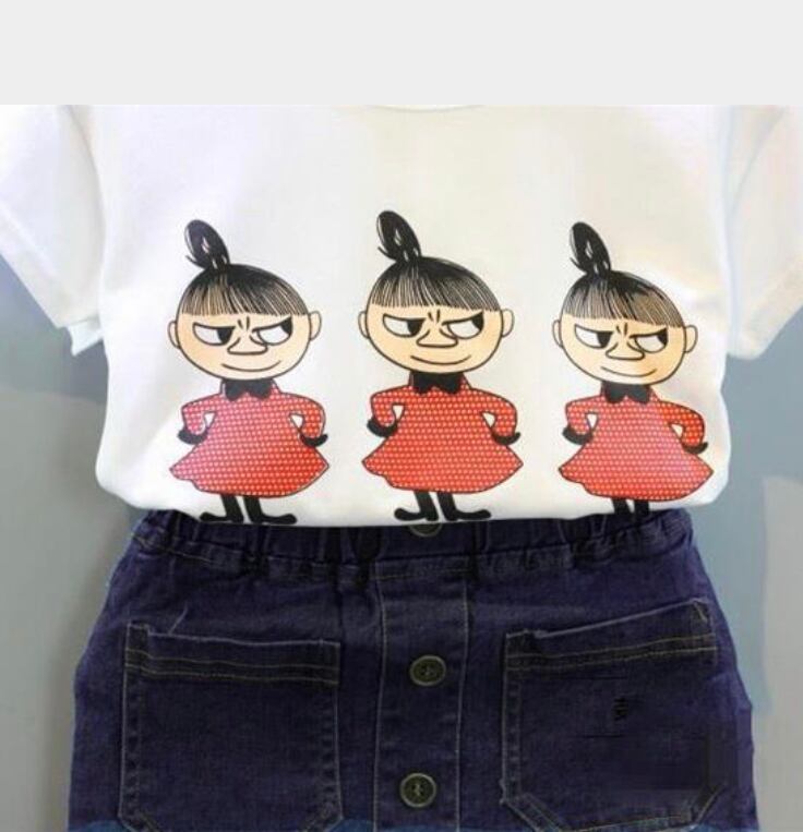 Tシャツとデニムスカートの